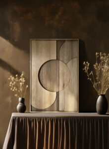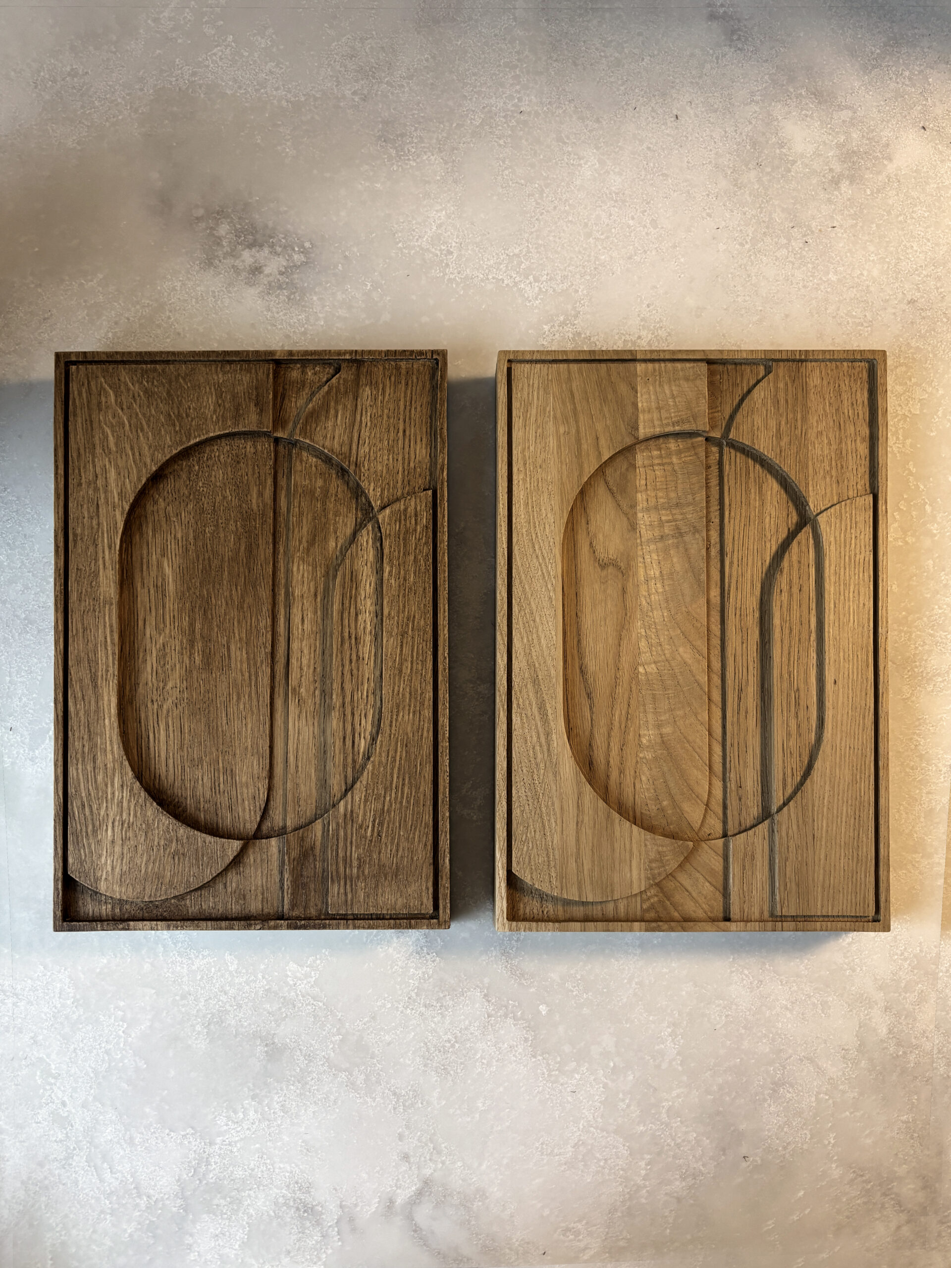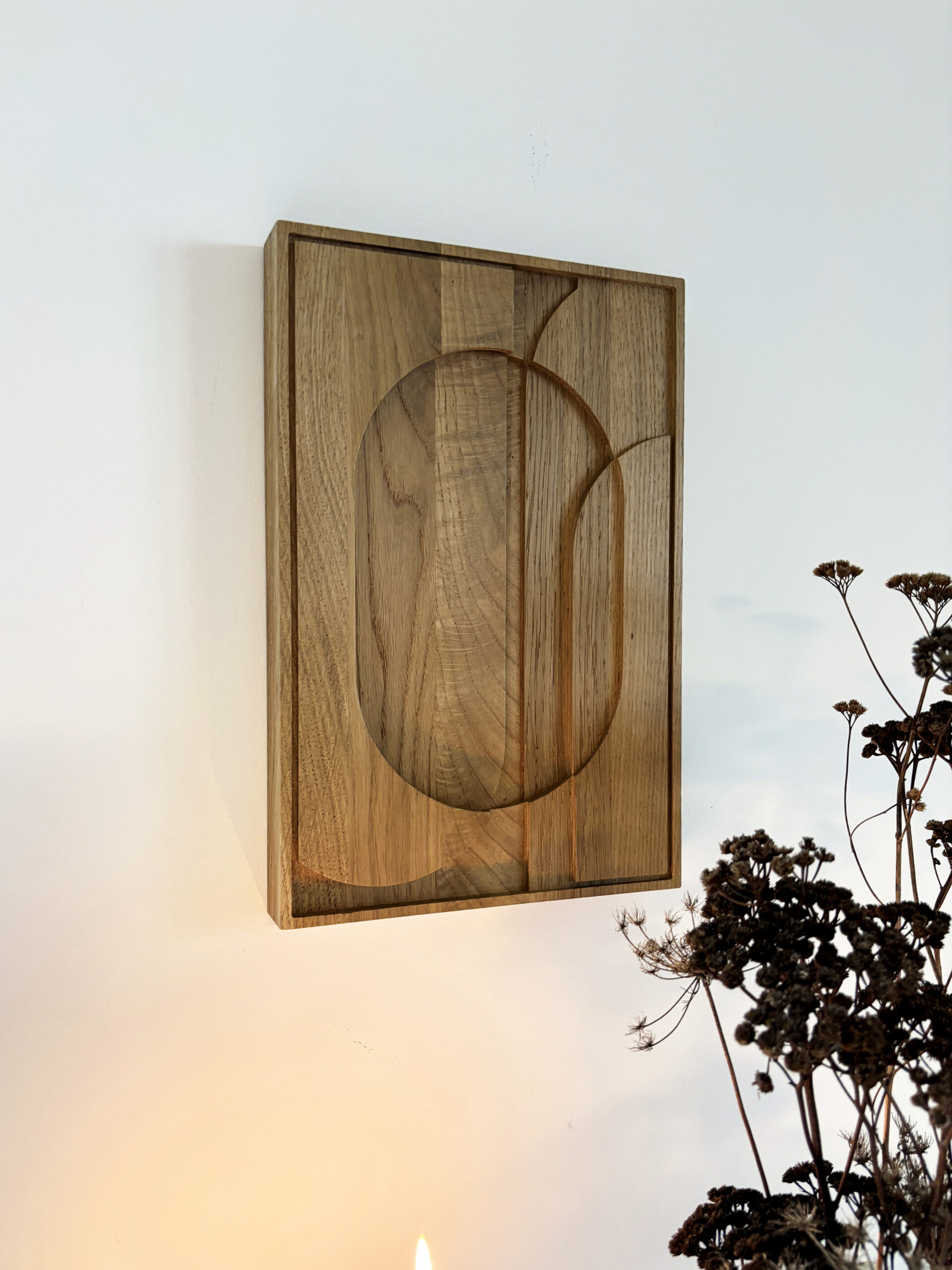 Reliefy to nasze dębowe płaskorzeźby – warstwy drewna przeplatają się ze sobą, tworząc trójwymiarowy wzór.