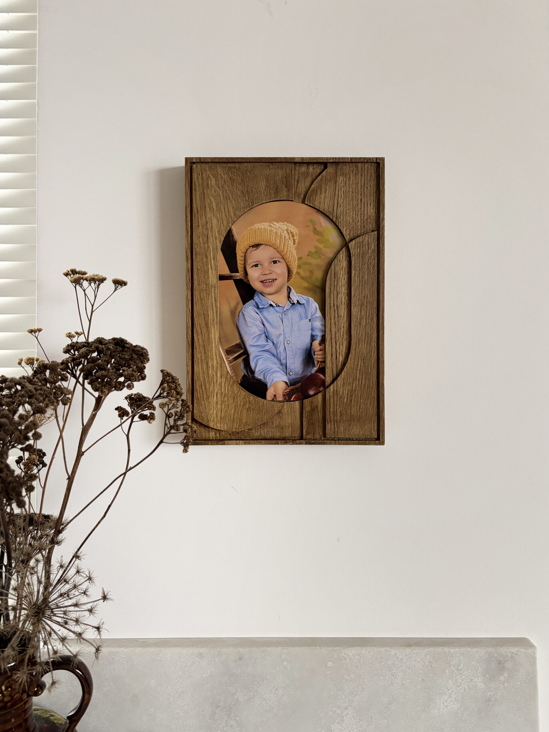 Wykorzystałam to, aby w jedną z warstw wpiąć kartkę… z kalendarza. Później pojawiły się kolejne wizje – a może włożyć tam ulubione zdjęcie, grafikę? Wycinam zdjęcie według wzoru i już, mam ramkę na zdjęcia. Zmieniam wystrój w zależności od mojej wizji. A może pory roku… Nie ważne! Może zaraz wyjmę wszystko i zostawię pustą przestrzeń. W sumie to ona nie wygląda na taką pustą… Relief zachwyca naturalnym drewnem, swoim niepowtarzalnym rysunkiem. Do tego ta głębia wyciętego wzoru!